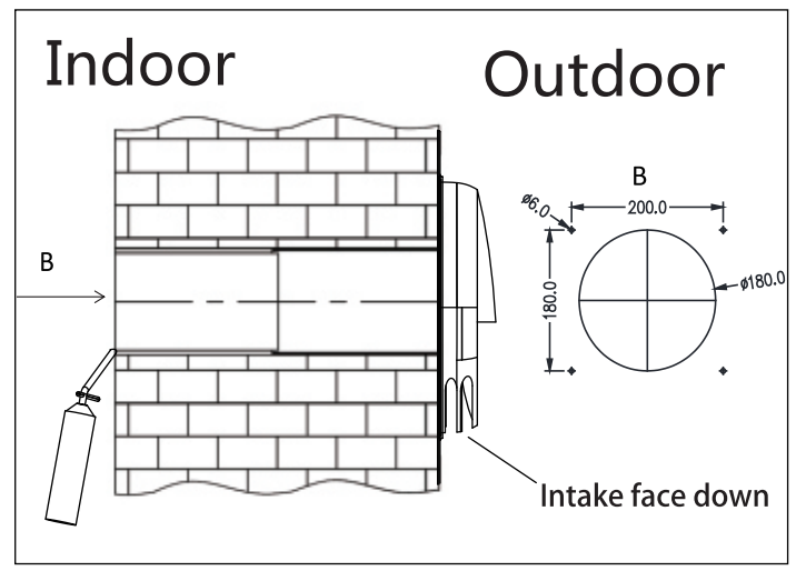 Drill or cut a round hole in the exterior wall with a diameter of 160 – 180 mm. Ensure the opening is straight and clean for a tight fit.